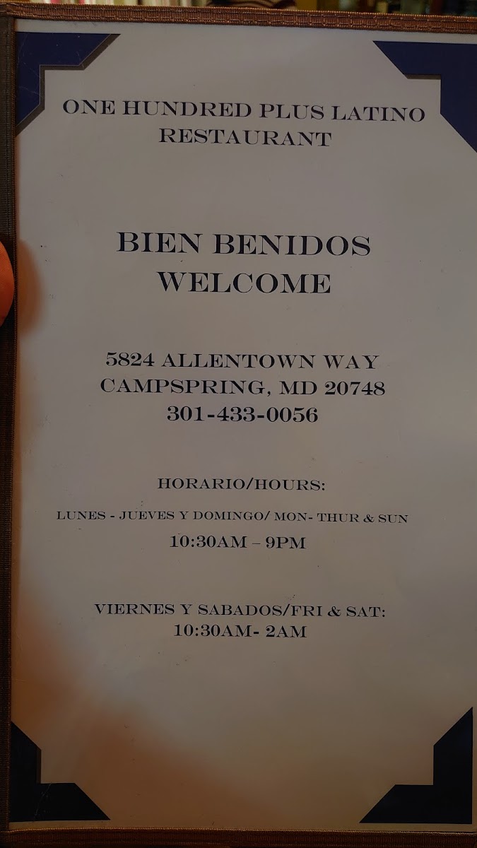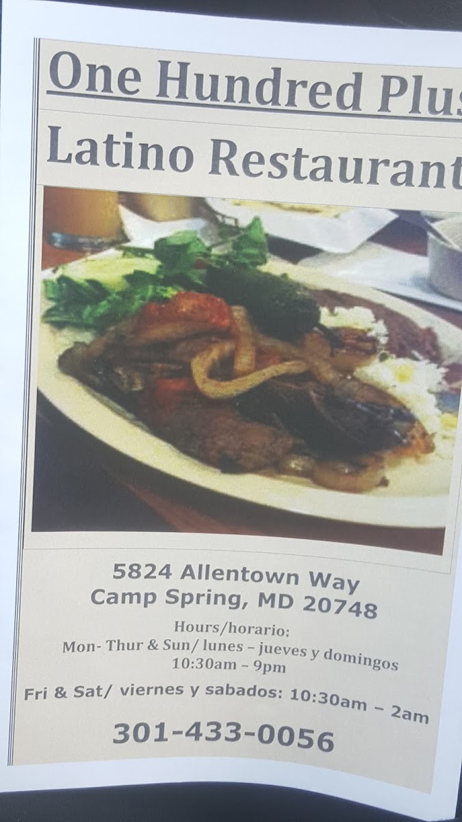 Welcome to 100 Plus Latino Restaurant, a hidden gem located at 5824 Allentown Way, Camp Springs, MD. This family-owned eatery exudes warmth, making every guest feel right at home.